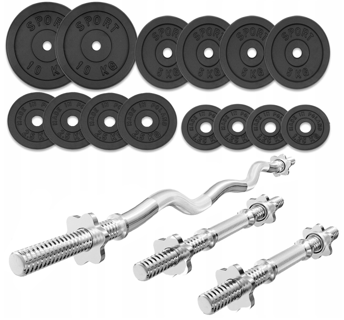 ZESTAW kulturystyczny żeliwny 65kg SZTANGA obciążenia Z GRYFEM siłownia